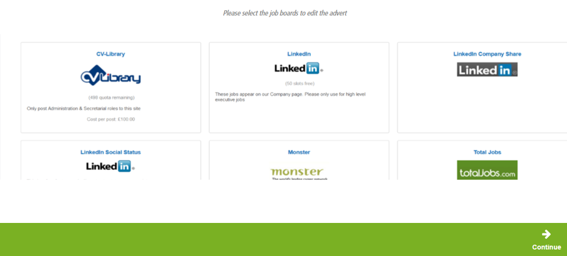 5. Choose which job board(s) you would like to edit and click Continue