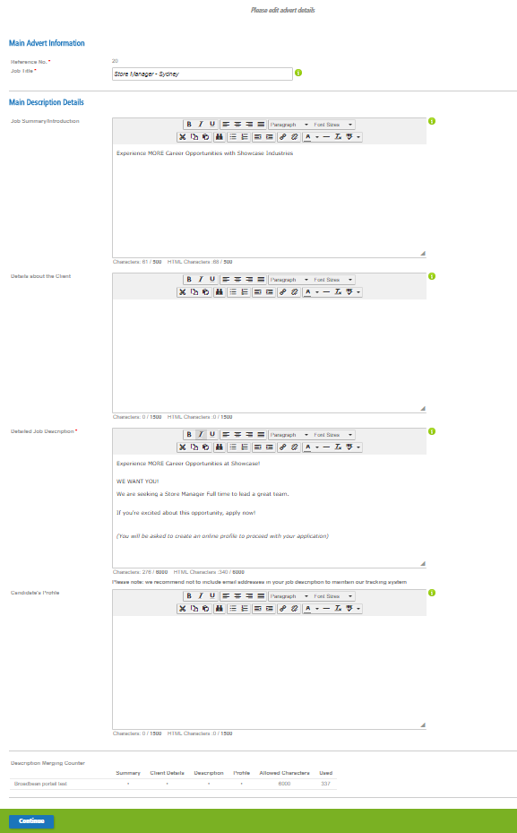 6. Edit advert details and Click Continue