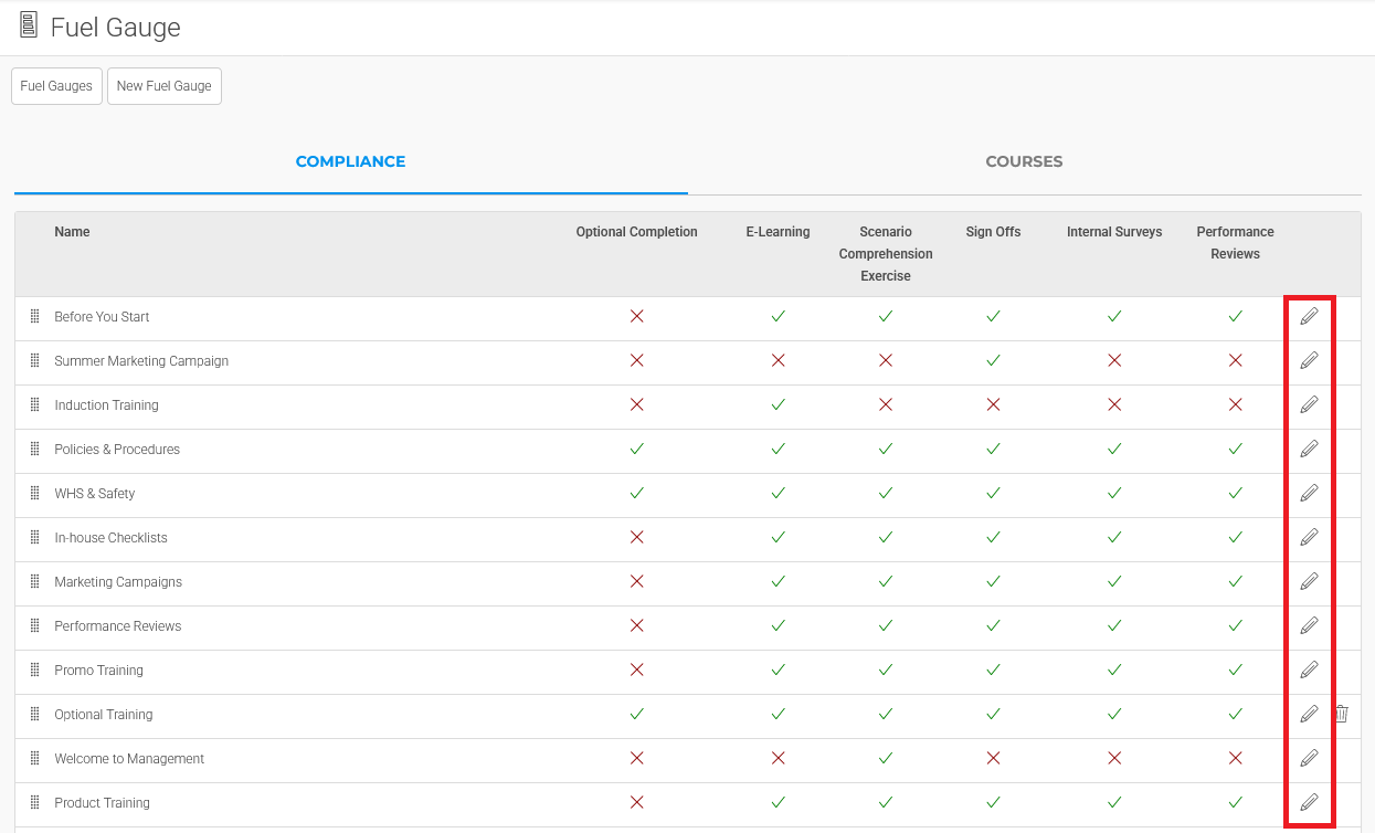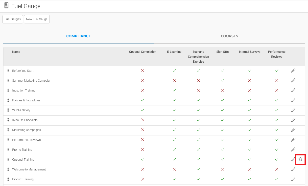 Tip: Existing Fuel Gauges can be converted into Optional Training, simply by ticking the 'Optional Training' field checkbox. For more information, please refer to the Optional Training is Here! article.