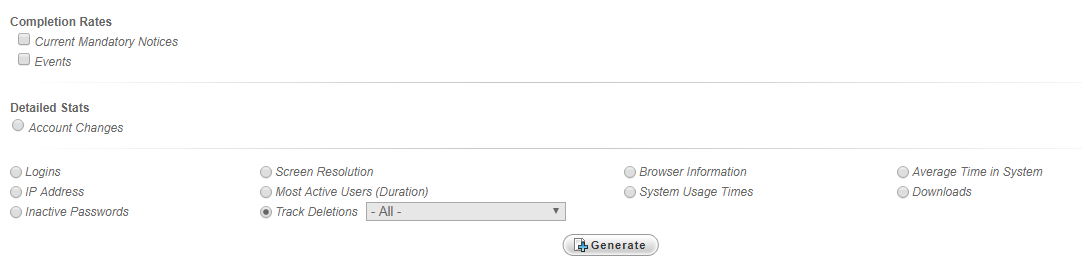 1. Choose 'Detailed Stats → Track Deletions', then select the type of deleted item (in this example, we'll choose "All")
