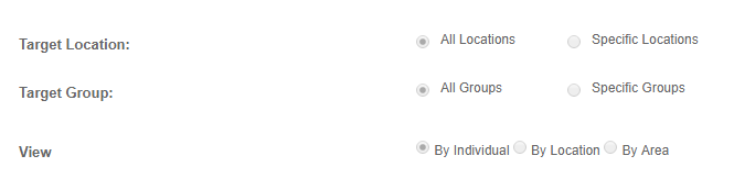 Note: The 'Target Location', 'Target Group' and 'View' selectors at the top of the page are not available for this type of report. They will be grayed out/disabled.