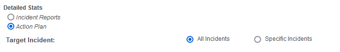 2. Choose 'Detailed Stats → Action Plan', then choose the template(s) you wish to report on (in this example, we'll choose "All Incidents")