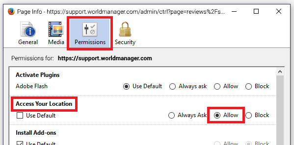 Tip: After implementing any of the below fixes for Internet Browsers, please return to and/or reload the Location Review page. You should then be prompted (again) to allow access to your location.