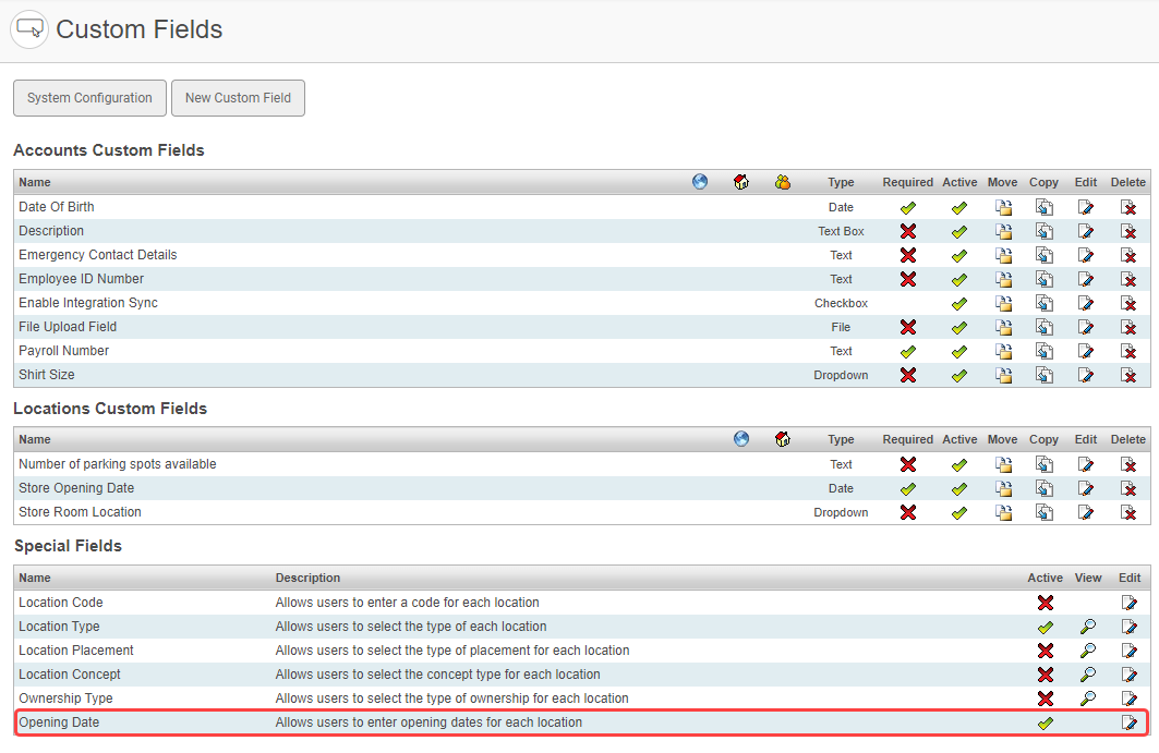 To Close a Location the Custom Field Opening Date has to be active so a closing date can be introduced, to active this Custom field: