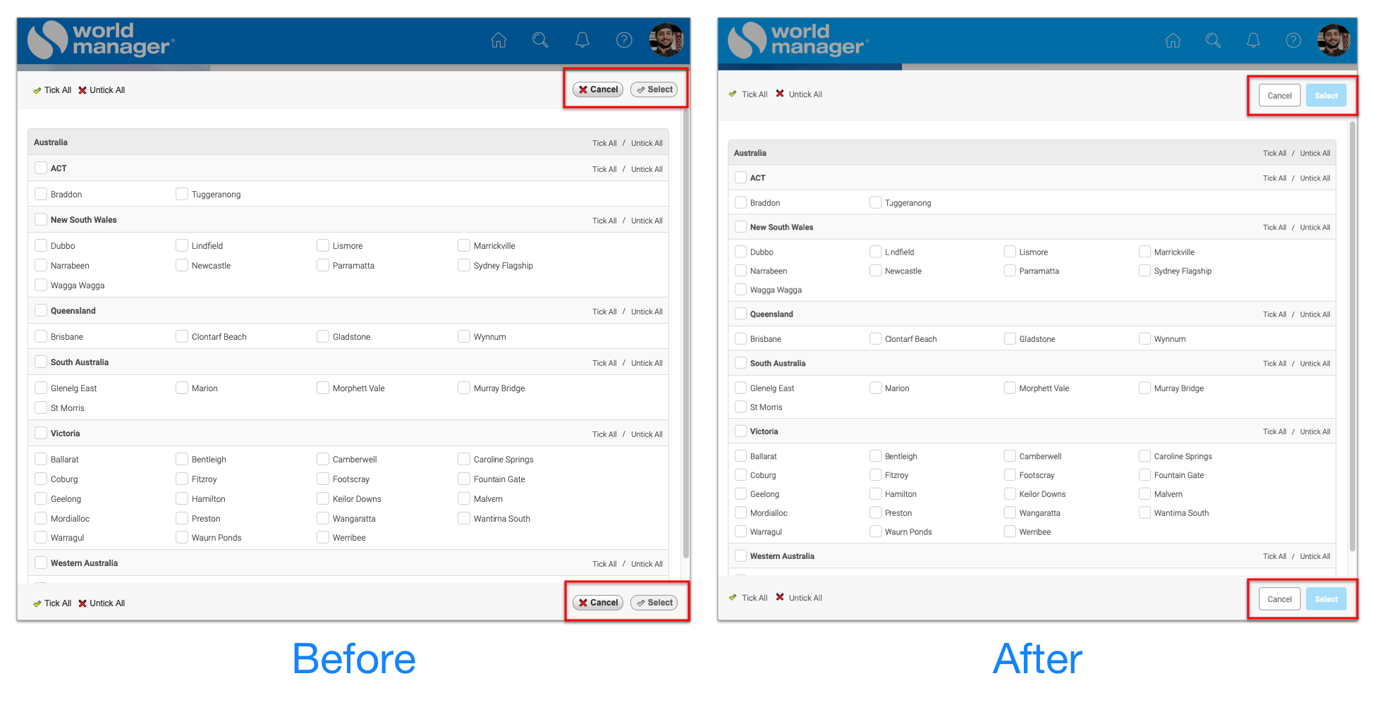 The visual upgrades keep coming to the World Manager platform! In v10.0.2 we've updated buttons on the platform to be inline with our modern design and added the ability to customise button colours, allowing you to match them with your Brand's style.