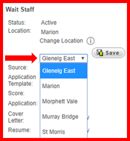 Clicking this button will show a drop down menu containing a list of only the locations the position is available for, and the current location(s) the applicant is assigned to.