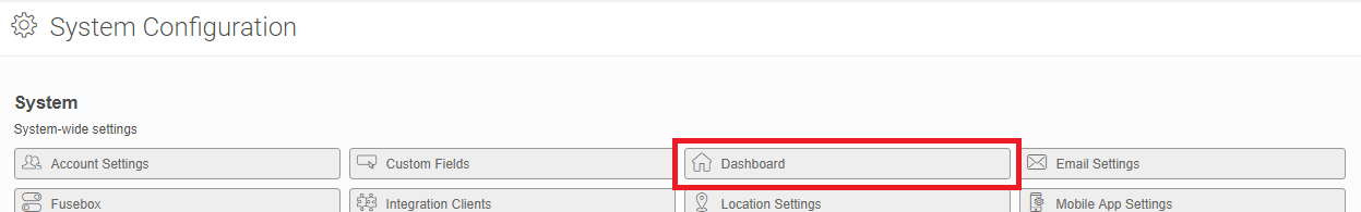 1. Log into your World Manager platform, then go to 'System → System Configuration' and click on the Dashboard button under the "System" section