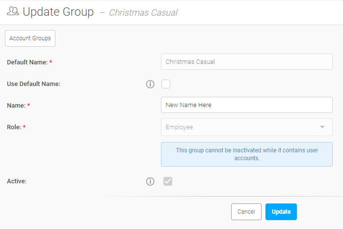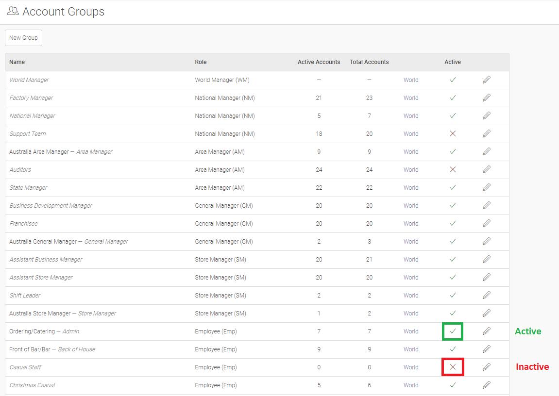 If the Account Group was created at National Level, it will be active by default. National level Account Groups cannot be deactivated.