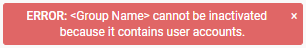Important: It is only possible to disable an account group that has zero (0) 'active' accounts within it. Otherwise, you will see the following error message: