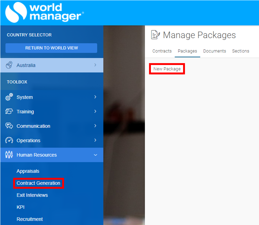 1. Go to (National Level) Human Resources → Contract Generation → Packages