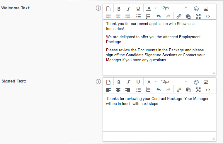 5. Enter a Welcome Text Message and Signed Text Message for the Contract Package Examples below:
