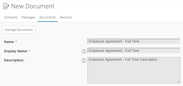 Note: Documents cannot be added to Packages unless they are Active, however, you can activate Documents on the Documents page after creation.