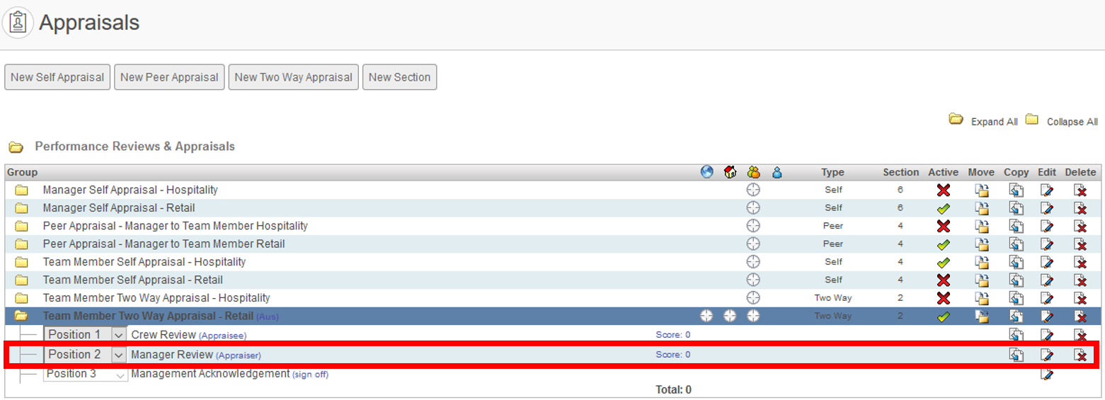 In this example, we are going to Link an Appraisal Question in an Appraisee Section (Crew Review) to an Appraisal Question in an Appraiser Section (Manager Review). This will enable the Appraiser to view the Appraisee answer when they are completing the Appraisal.
