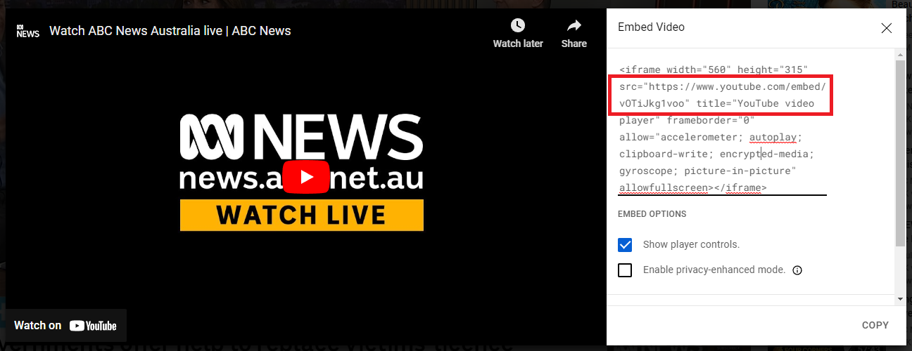 You will find the URL for the video in the code on the right-hand side. The URL will look similar to the below URL: