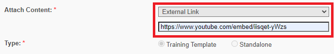 3. Next to 'Attached Content' select 'External Link' and enter the URL for the video in the text field that appears.