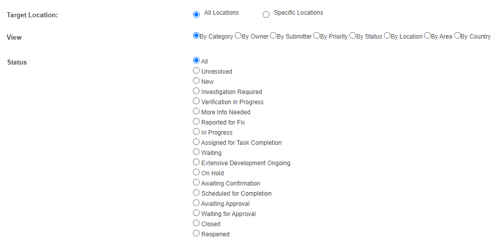 1. Choose desired Target Location, View and Status