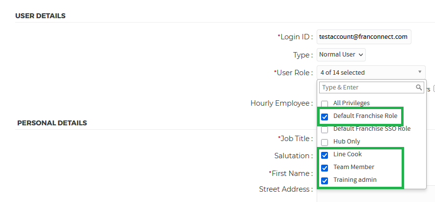 9. In the Select Role(s) drop-down, select any/all applicable role(s)