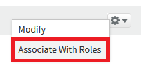 8. Click on the 'action' drop-down menu next to the newly created SAML Group, then select the "Associate With Roles" option