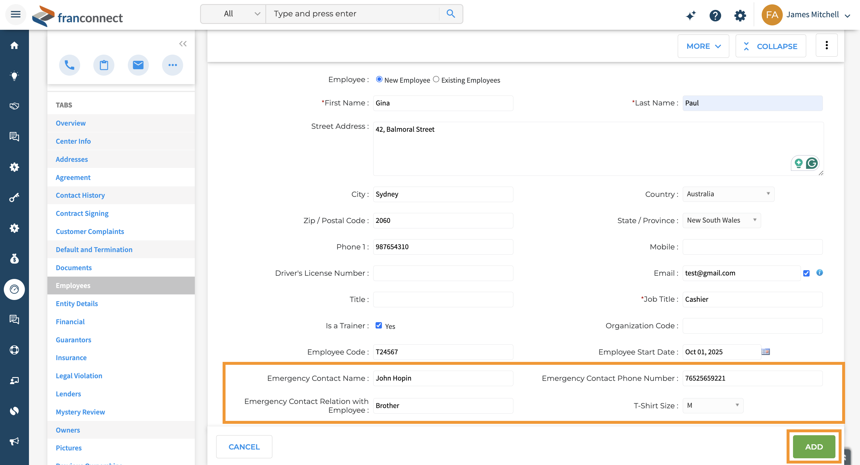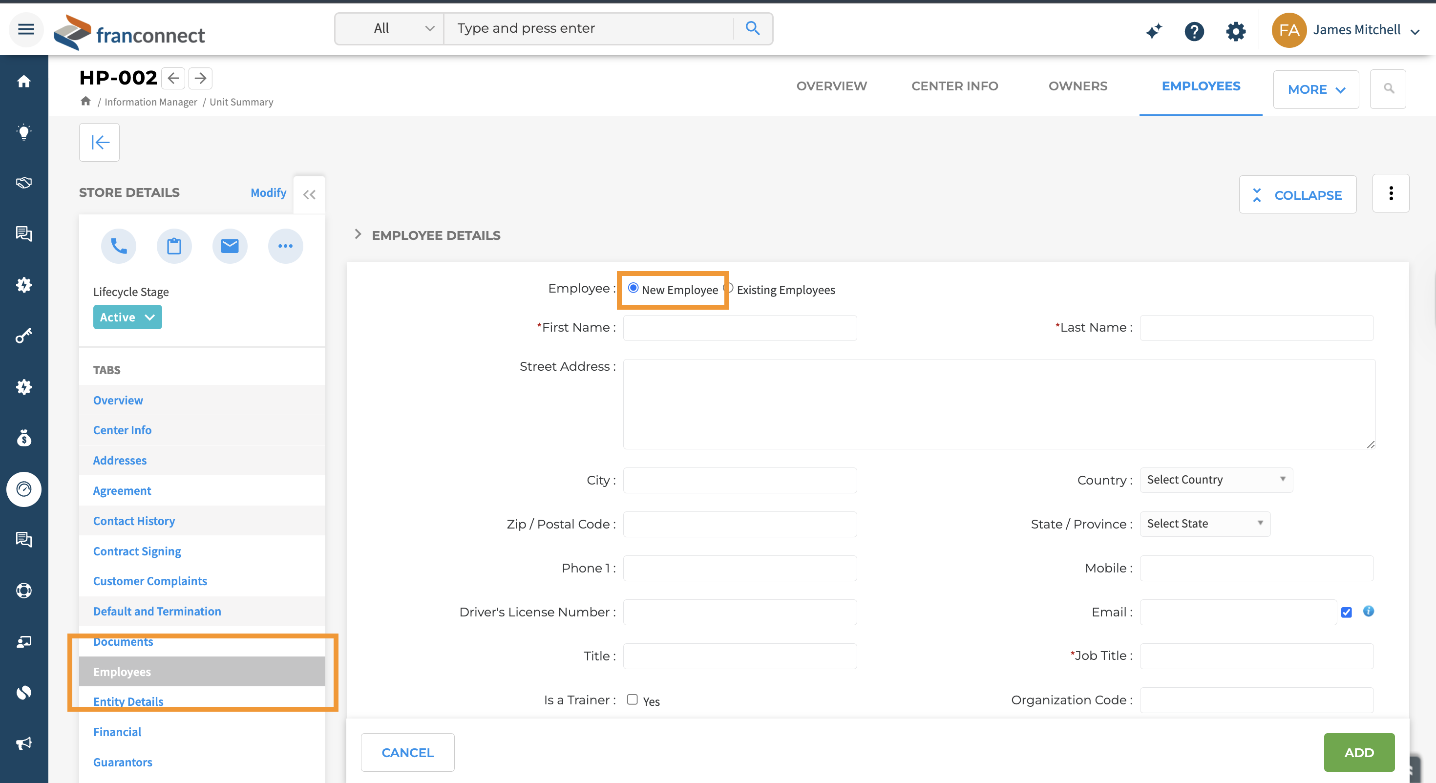 Click ‘Add More’, then choose the ‘New Employee’ option to begin entering a new record.