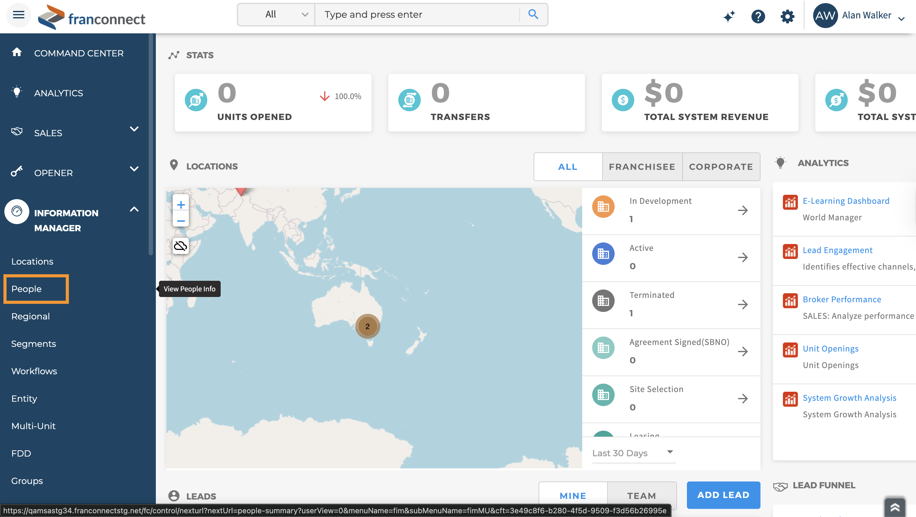 Click Information Manager on the left-hand sidebar and select People from the drop-down menu.