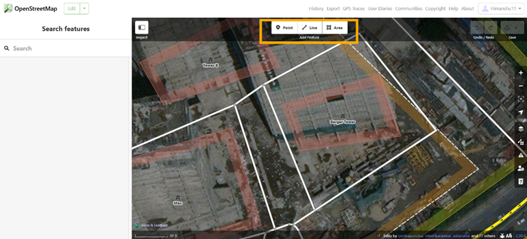 At the top, you’ll see an Add Feature toolbar with options to create a Point, Line, or Area. You can edit or remove any of these features as needed to update the map: