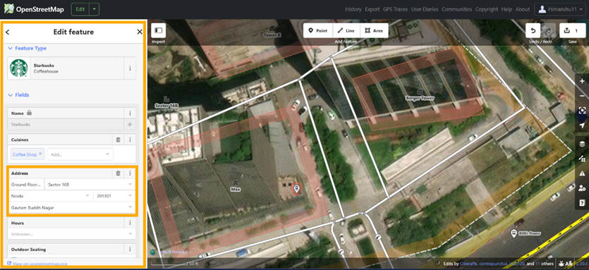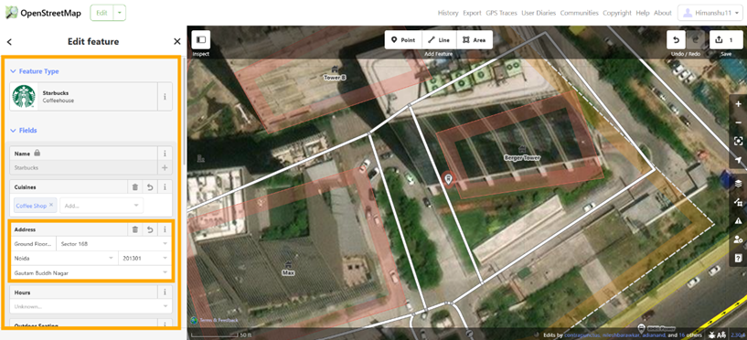 - In this example, you would normally choose the Restaurant feature and fill in the details. However, since Starbucks is a well-known chain, it already has a predefined label. Simply select Starbucks.