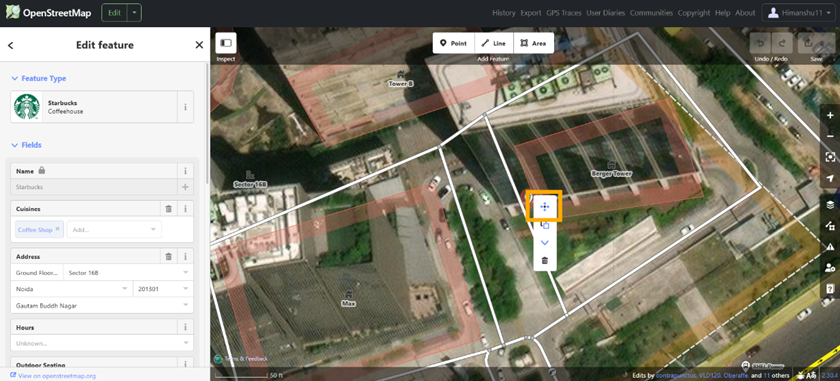 - To move an existing location, right-click on the Starbucks point, choose Move from the toolbar, and drag it to the new spot.