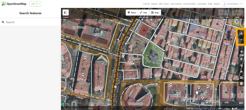 - First, navigate to the correct area on the map and zoom in until you have a clear view.