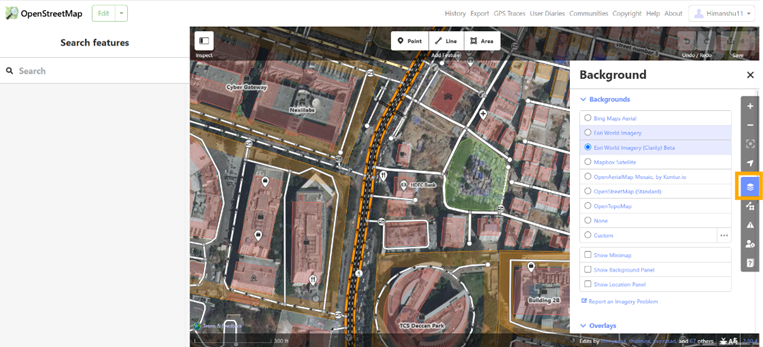- To adjust the background, click the Layers icon on the right side of the editor. From there, you can switch overlays and customize how the map is displayed. Choose the view that works best for you.