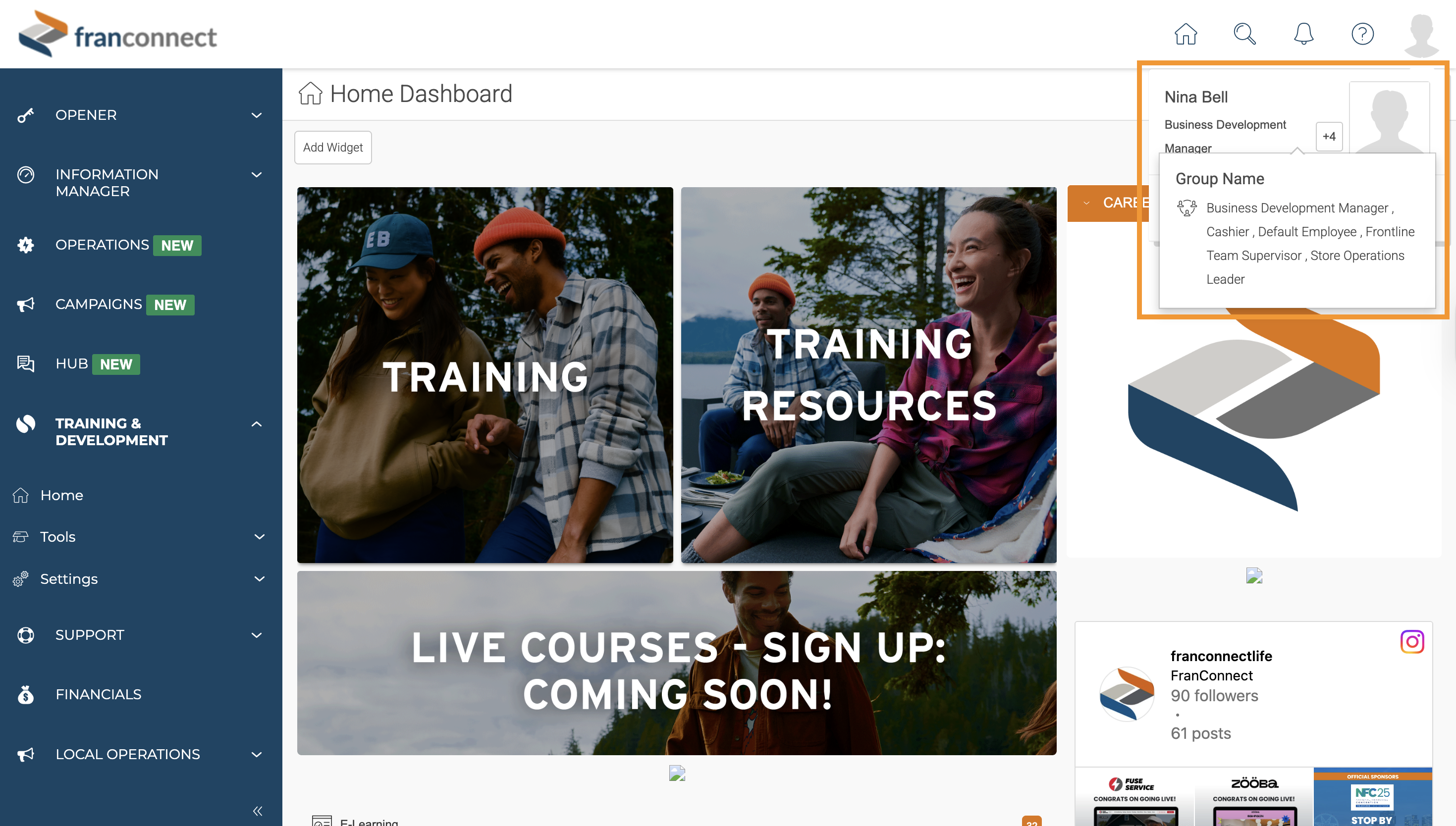 In some franchise locations, a single user may take on responsibilities across management and operational levels. For example, a user may: