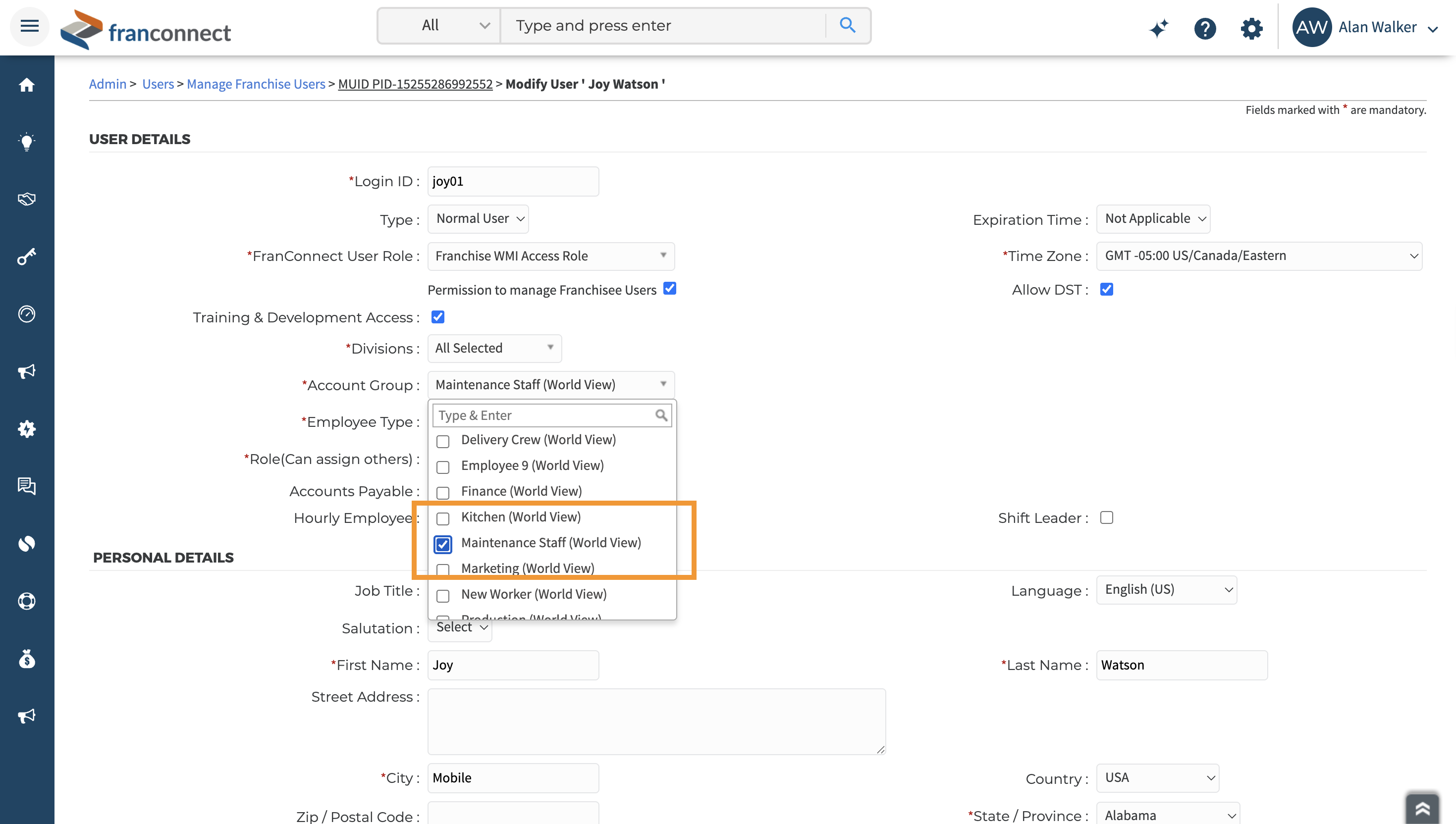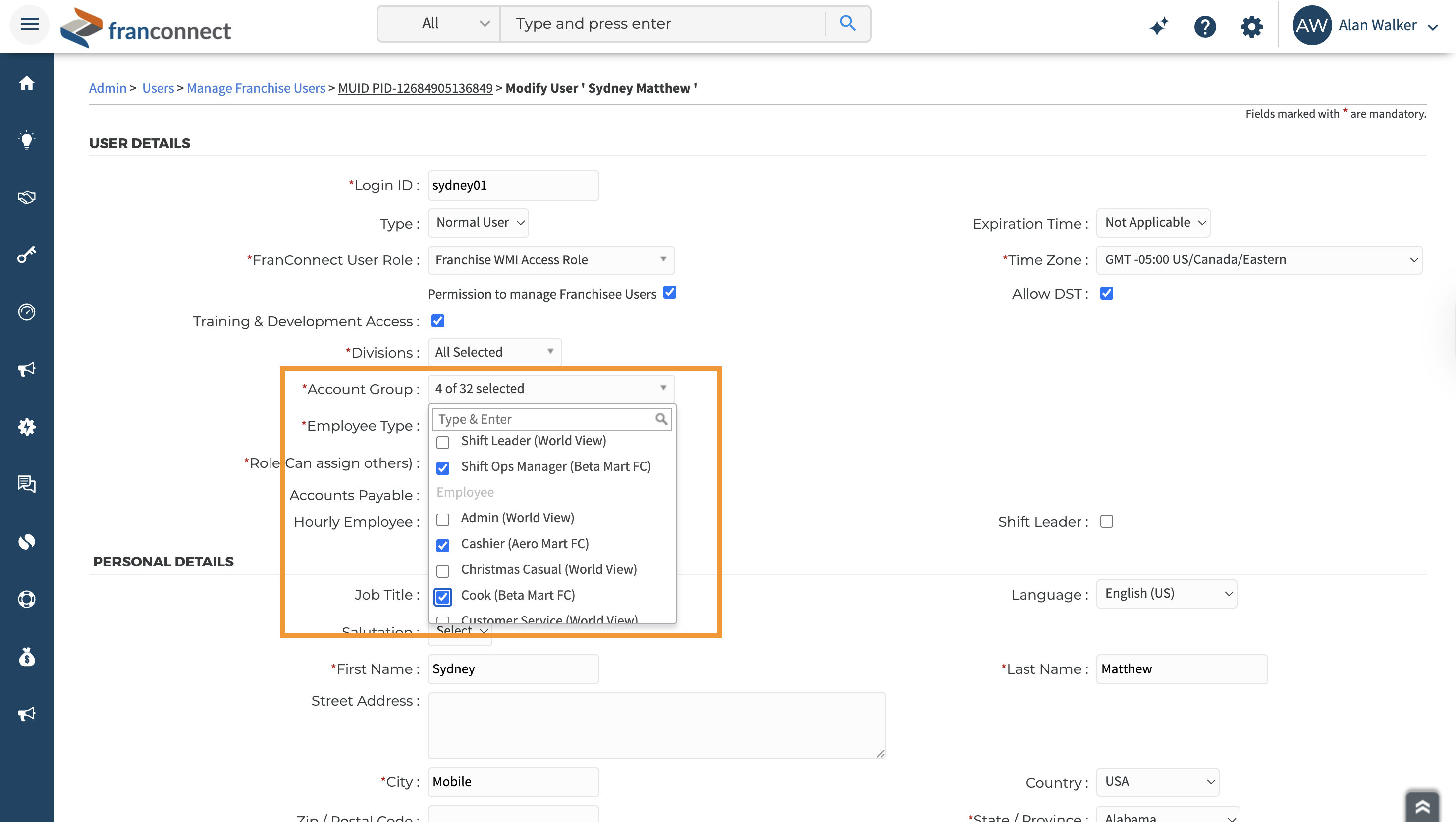 Use this when the user performs the same role across multiple brands or Divisions.Assign a user to multiple Account Groups across locations belonging to multiple Divisions
